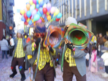 Non avendo un capannone in cui costruire il carro, il gruppo sfila come dei barboni senzatetto.